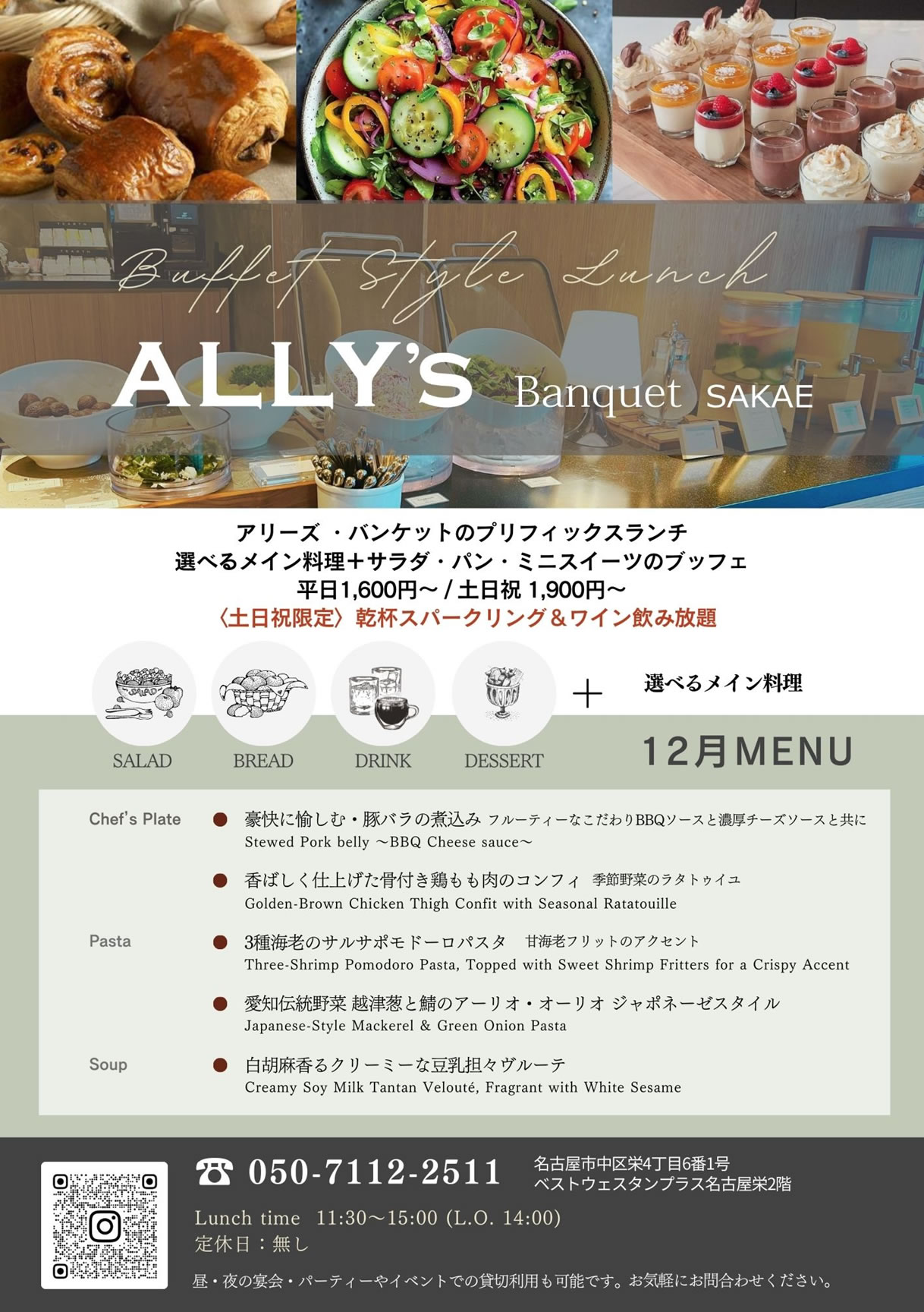 サラダ・パン・ミニスイーツのブッフェが付いてこの価格!
