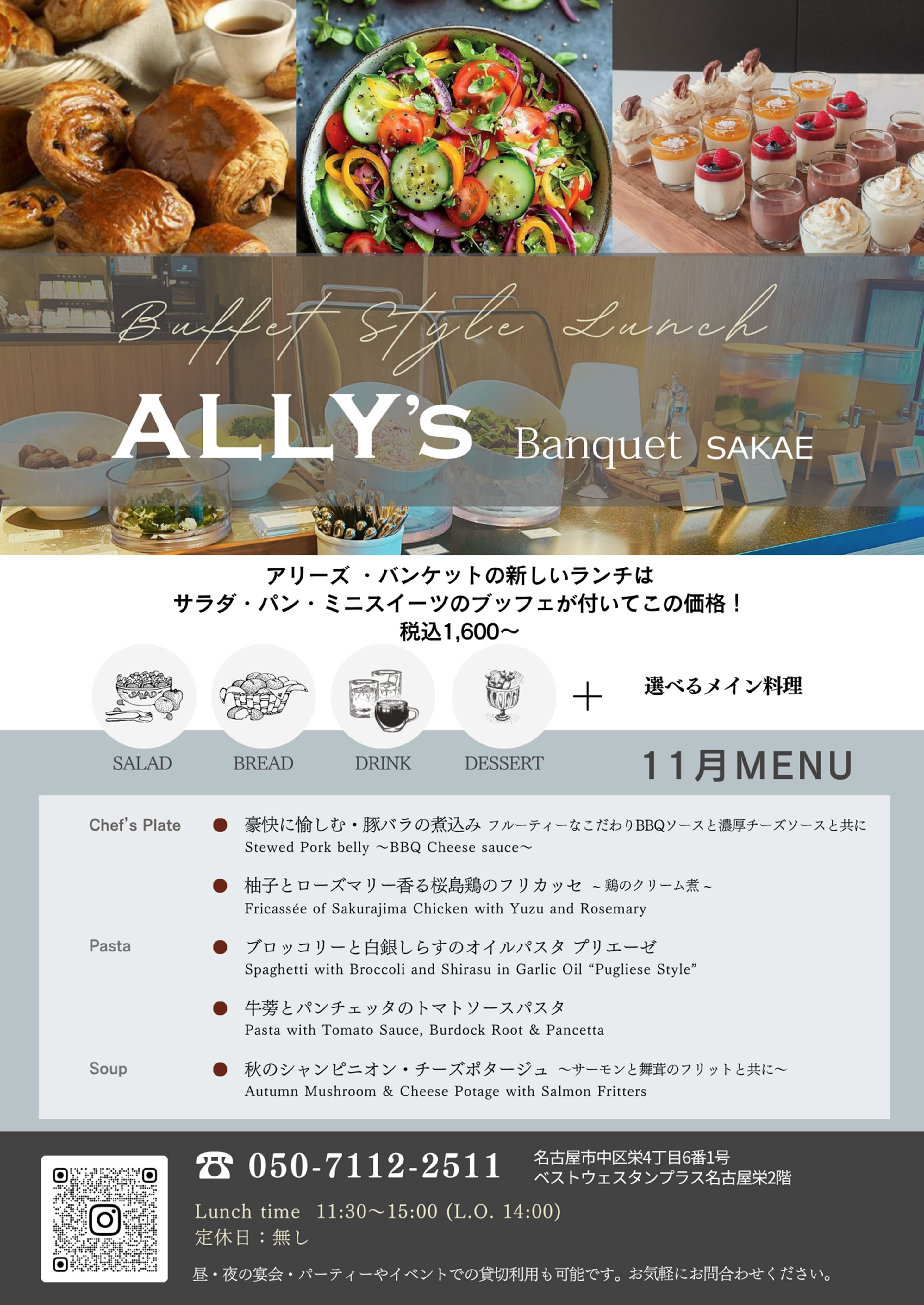 サラダ・パン・ミニスイーツのブッフェが付いてこの価格!